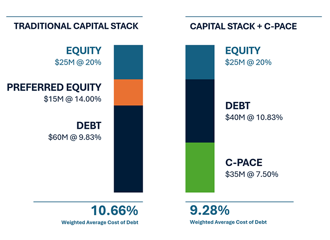 C-PACE finances these measures with long-term, fixed-rate financing, generally on a non-recourse basis. The structure exists because the state and local municipalities view these improvements as a public benefit, akin to how a sewer improvement would benefit the public.